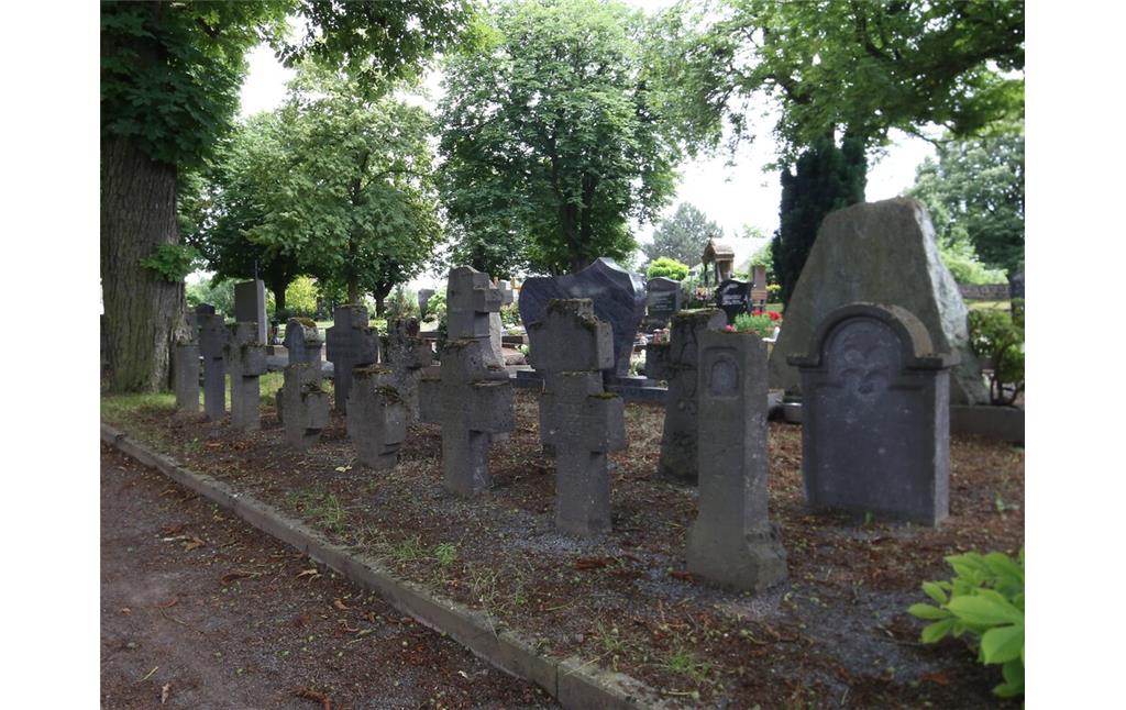 Frank Neupert vom Plaidter Geschichtsverein erzählt von den alten Grabkreuzen auf dem Friedhof in Plaidt (2021).