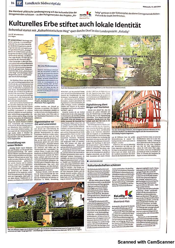 Pirmasenser Zeitung über das Teilprojekt Bobenthal (31.07.2019)
