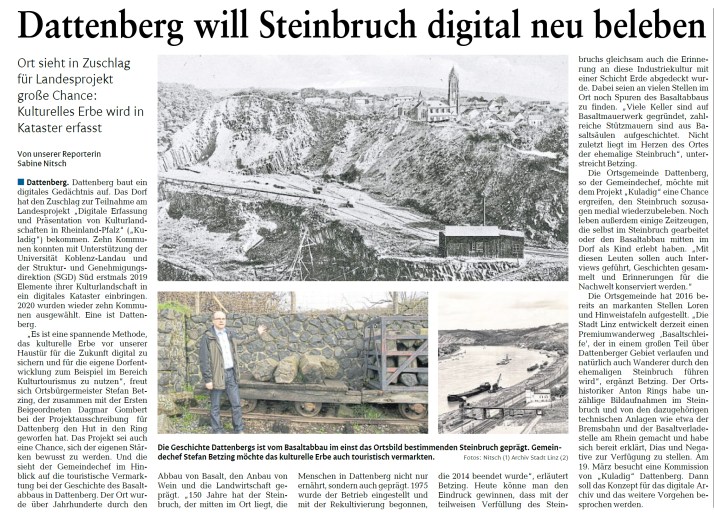 Rhein-Zeitung über das Teilprojekt in Dattenberg (04.03.2020)