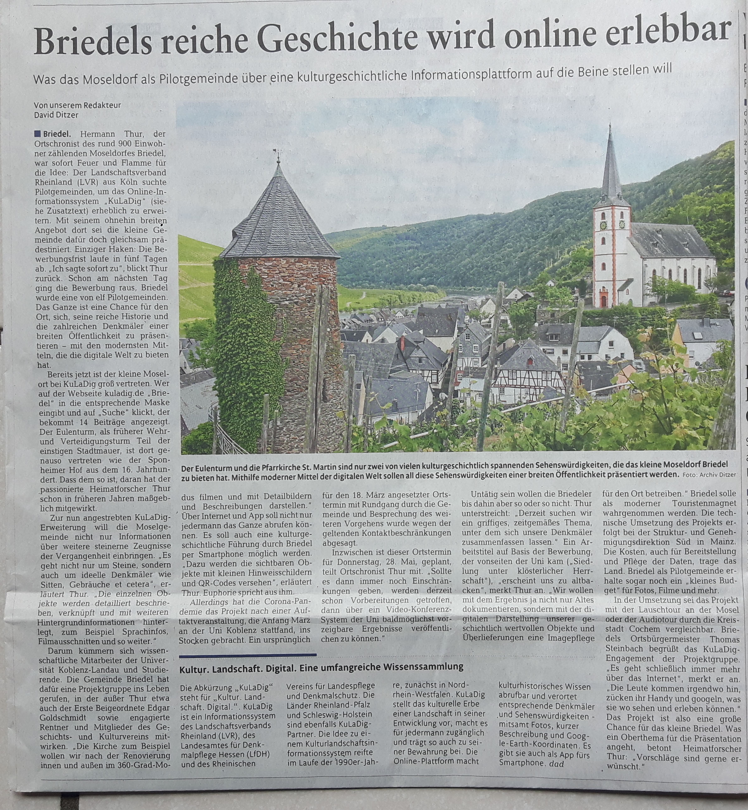 Rhein-Zeitung über das Teilprojekt Briedel (30.04.2020)