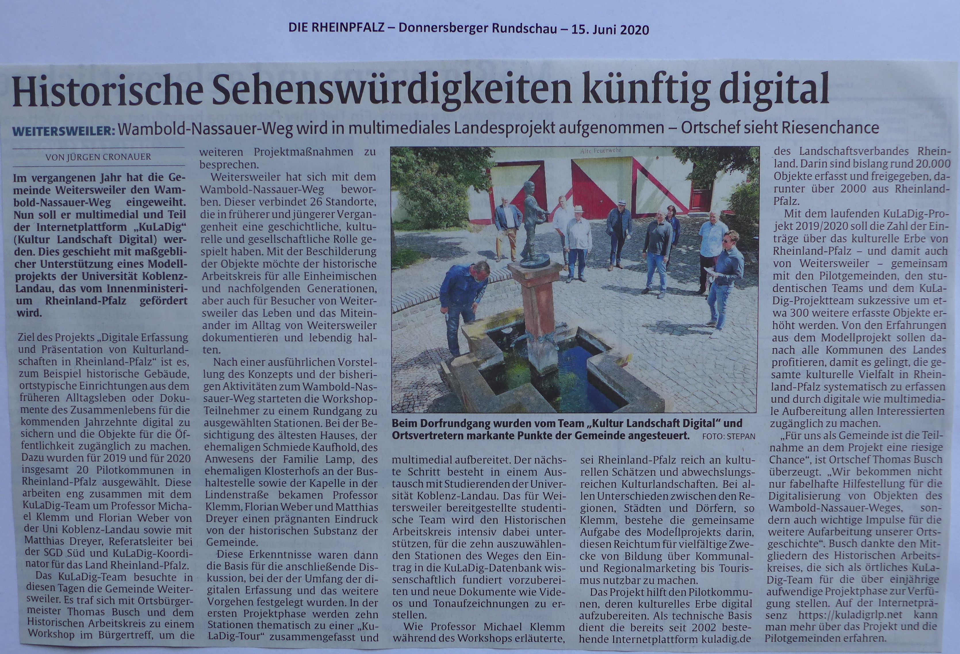 Rheinpfalz über das Teilprojekt Weitersweiler (15.06.2020)