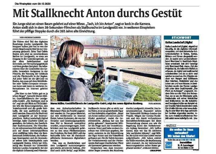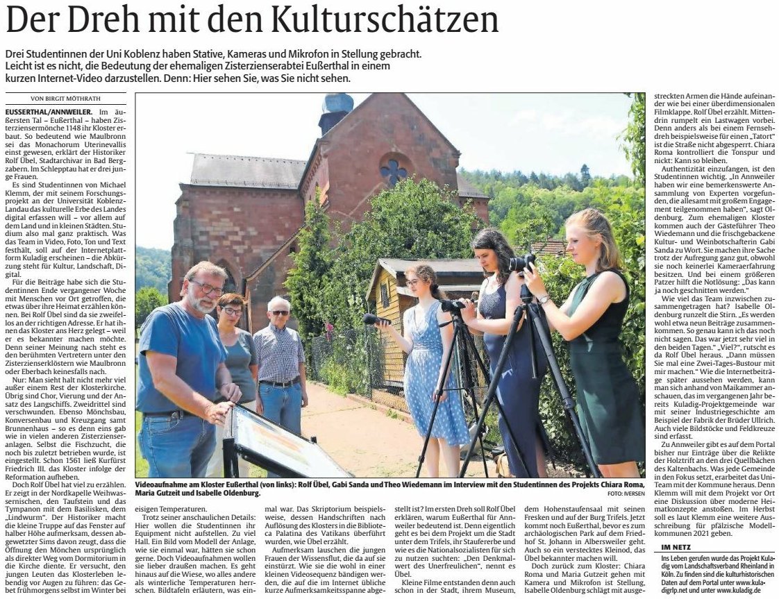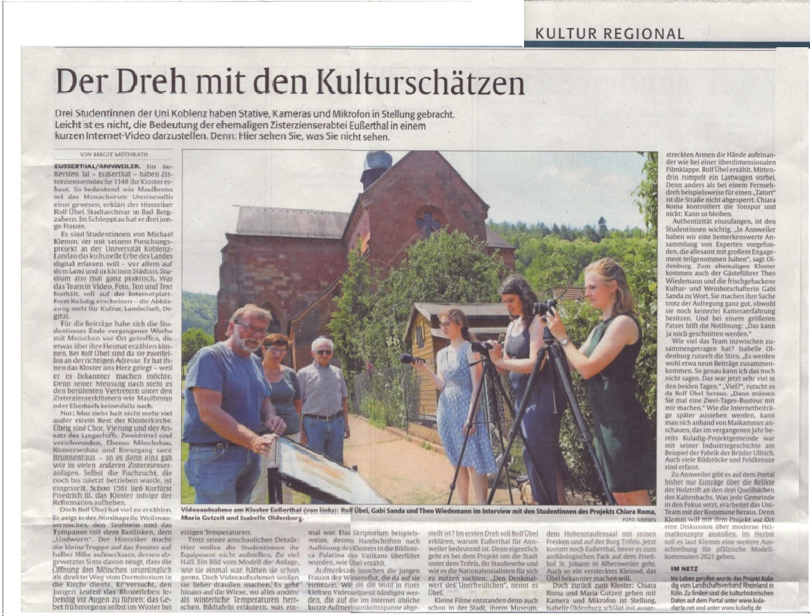 Rhein-Zeitung über KuLaDig-RLP und das Teilprojekt Koblenz-Lützel (12.09.2020):