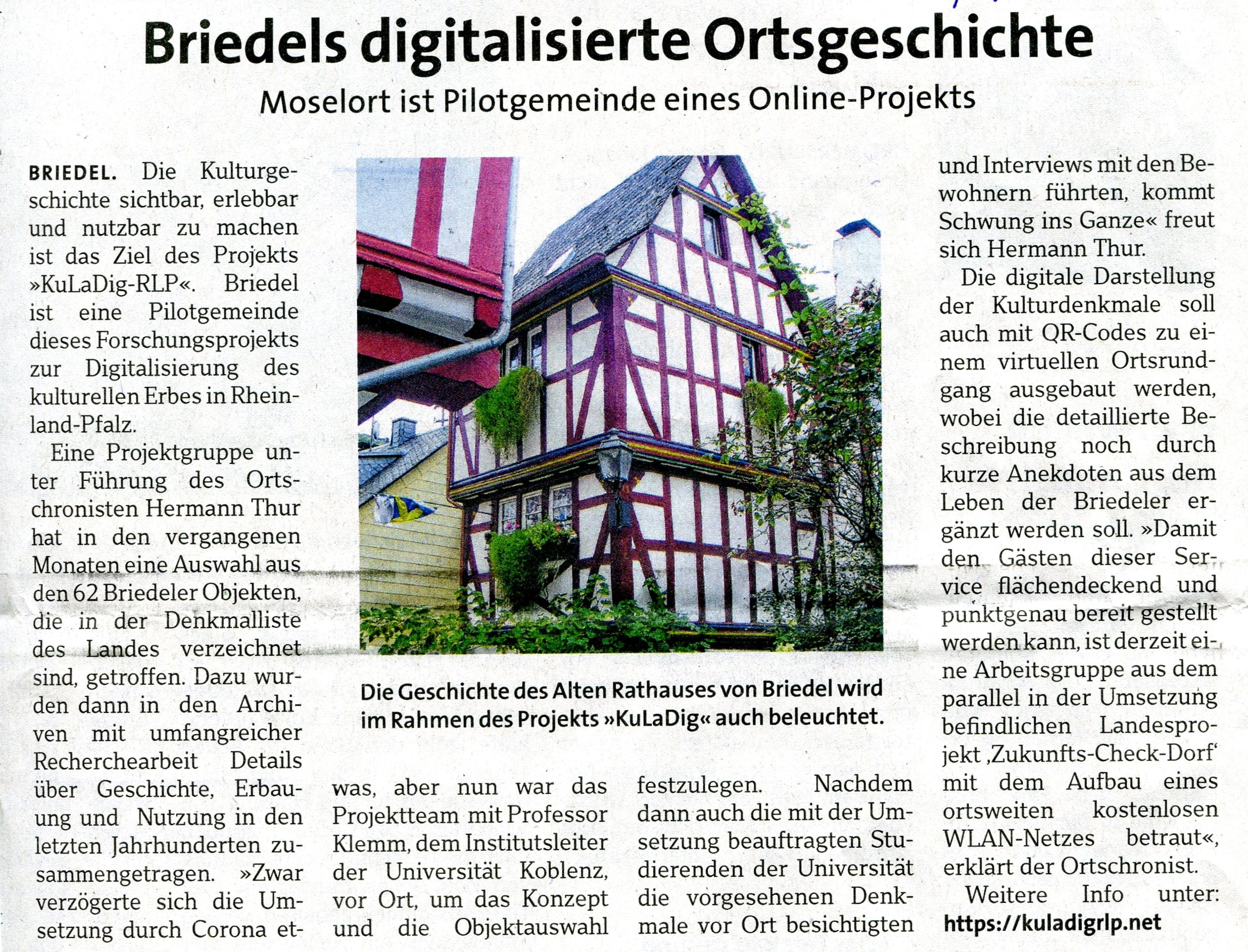 Wochenspiegel Cochem / Zell über das Teilprojekt Briedel (22.07.2020):