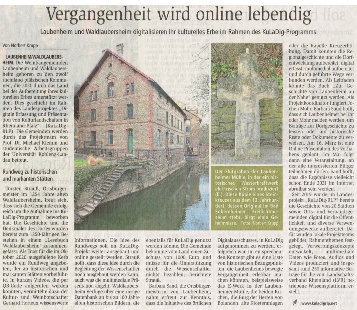 Allgemeine Zeitung über die Teilprojekte Laubenheim und Waldlaubersheim (13.03.2021):