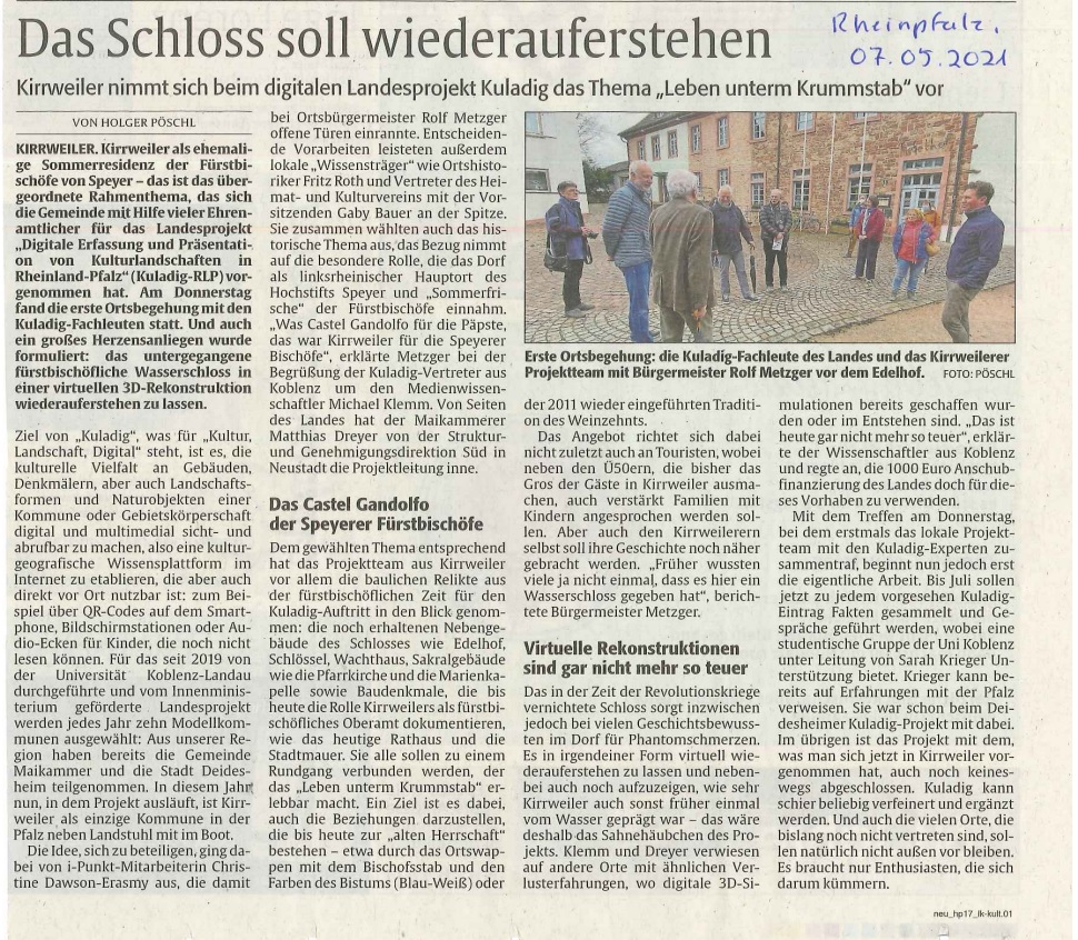 Rheinpfalz über das Teilprojekt Kirrweiler (07.05.2021):