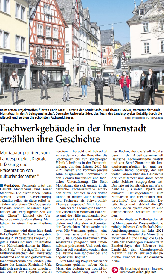 Rhein-Zeitung über das Teilprojekt Alf (16.04.2021):
