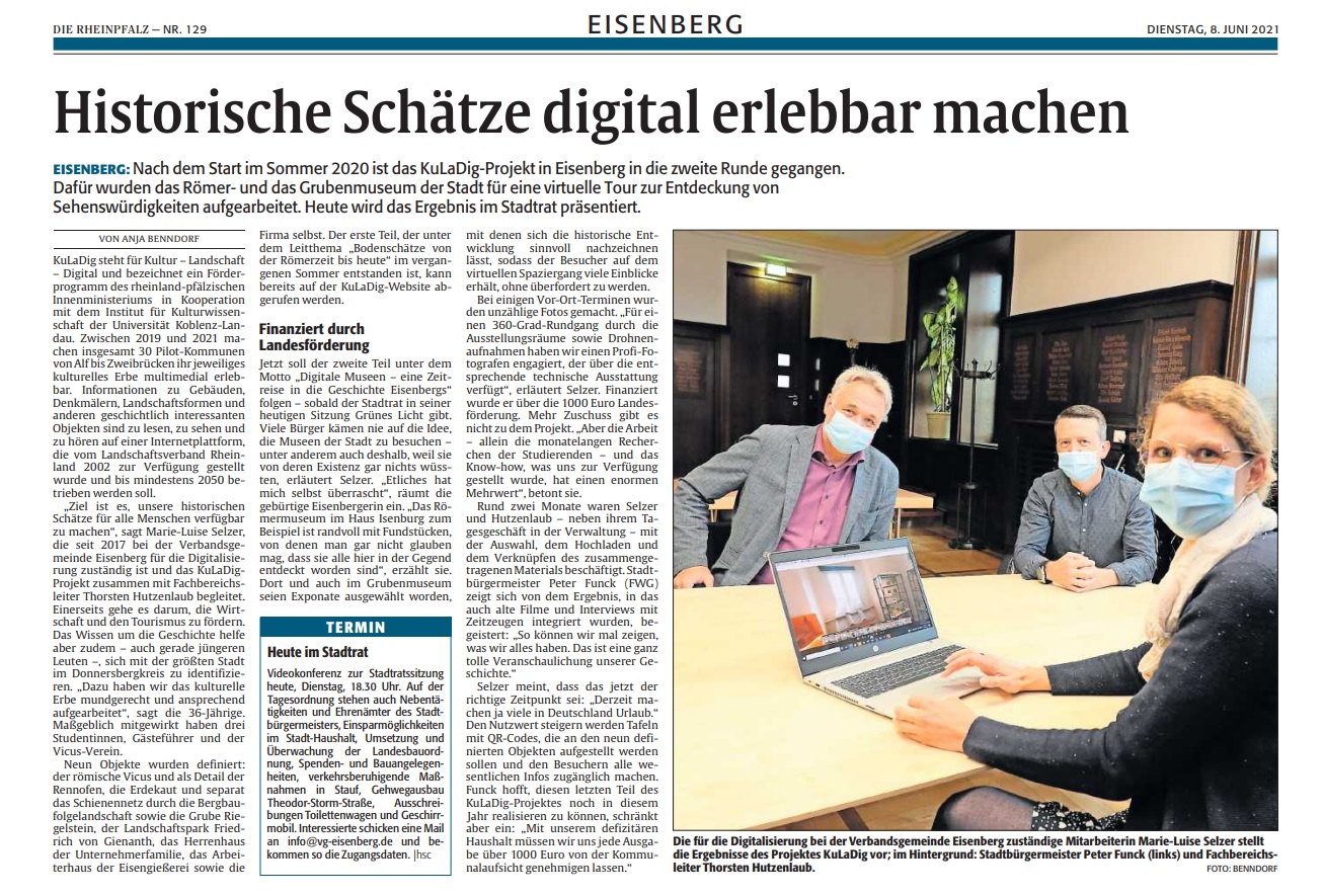Rheinpfalz über das Teilprojekt Eisenberg (08.06.2021):