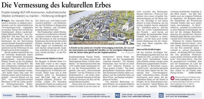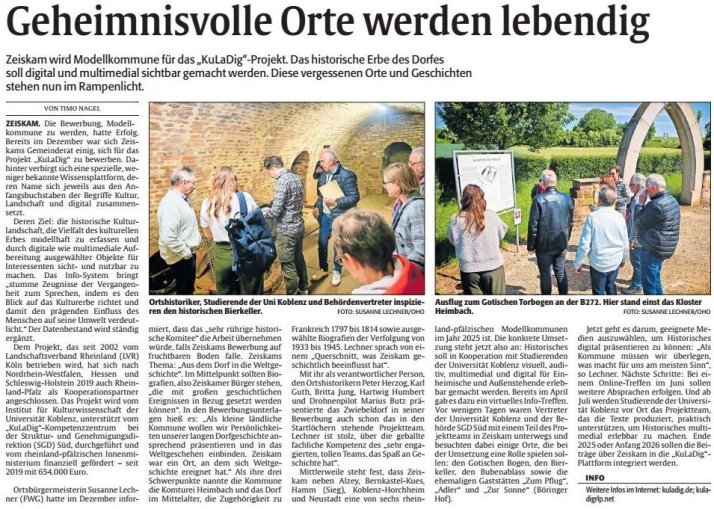 Rhein-Zeitung / Rhein-Lahn-Zeitung über das Teilprojekt „KuLaDig-RLP meets BUGA 2029“ (24. April 2025):