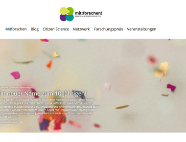 „Bürger schaffen Wissen“ wird zu „mit:forschen! Gemeinsam Wissen schaffen“ Pünktlich zum 10-jährigen Jubiläum erhält die Citizen-Science-Plattform „Bürger schaffen Wissen“ einen neuen Namen und heißt seit diesem Monat „mit:forschen! Gemeinsam Wissen schaffen“ (erreichbar unter: http://www.mitforschen.org). 2014 […]