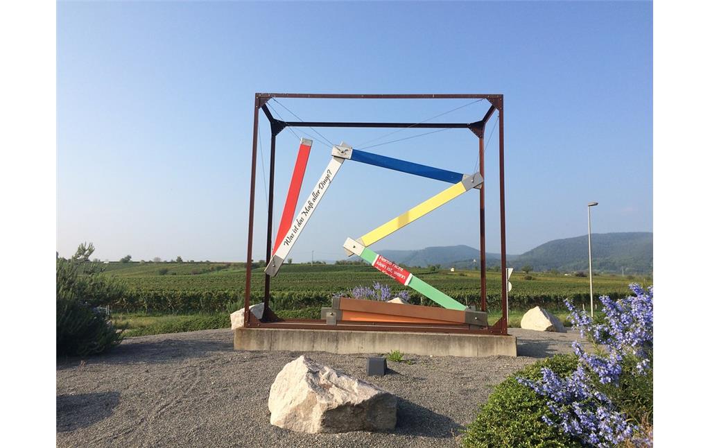 Das Denkmal erinnert an die Erfindung des Zollstocks in Maikammer.